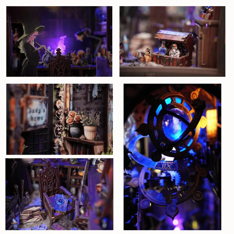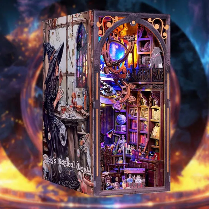 Book Nook – Judy's Magical World è un kit fai-da-te ricco di dettagli fiabeschi che crea un'atmosfera misteriosa e magica. Dai libri incantati disegnati a mano alle bottigliette di pozioni luminose fino all'illuminazione suggestiva, questo modello unisce fantasia e precisione artigianale. Ideale da regalare, collezionare o come elemento decorativo di rilievo nella libreria.